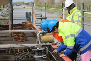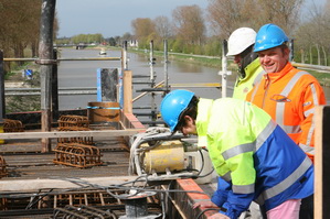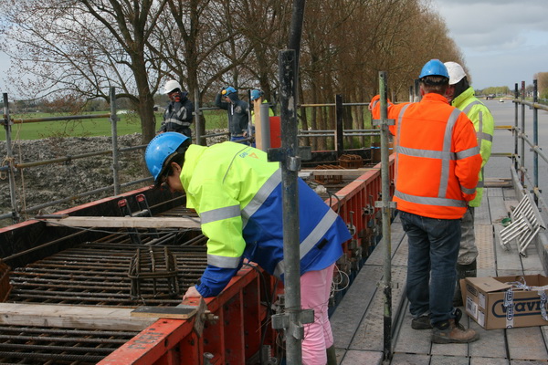 Uitvergroot… De twee zijn bezig met de bovenkant van de wapening, zo te zien… Daar komt blijkbaar ook nog iets bovenop….