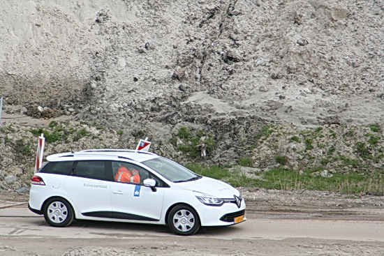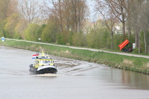 Aha, dit verklaart iets meer… De onbekende personenwagen is van Rijkswaterstaat… De inzittenden staan vast en zeker in verbinding met de bemanning van de “Pluimpot”! Kanaalinspectie? Diepte? Breedte?