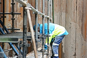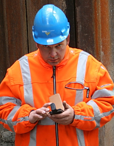GMB-timmerman Jan is onderin aan de voet van de pijler bezig met het fijnere werk….
