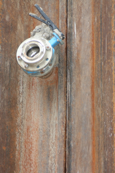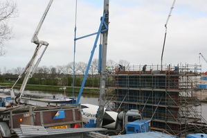 En waarvoor is die aansluiting? (Niet al het onbegrijpelijke laat ik aan me voorbijgaan…) “Die wordt gebruikt voor het binnenlaten van water, als de pijler klaar is en de damwanden moeten worden verwijderd. Dan moet de druk aan beide kanten gelijk zijn…” (Aldus uitvoerder Johan)