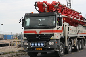 ’s Middags kom ik nog eens terug, zo tussen 2 en half 3… Is de klus al geklaard! Gaat de Mercedes met de betonpomp, arm keurig opgevouwen, naar huis. Of naar een volgende klus….