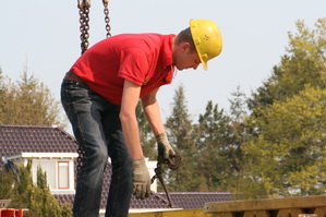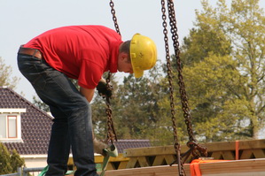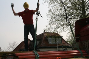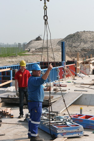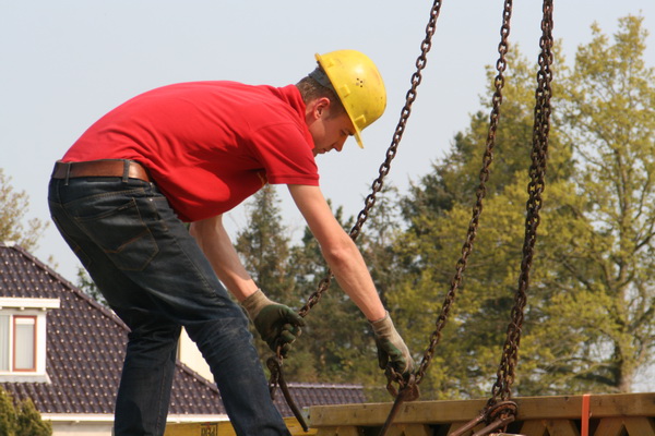 Gebarentaal als communicatiemiddel… De kraanmachinist kan dit zien, geen walkie talkie nodig….