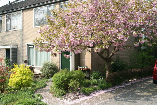 Terug bij de thuisbasis, waar de prunus zorgt voor roze sneeuw, heel vroeg in het bloeiseizoen!
