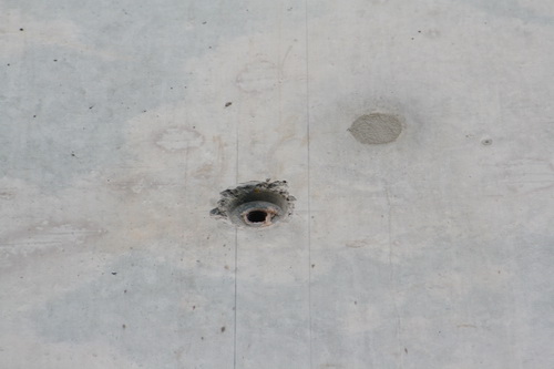 Zo’n gat bedoel ik, benodigd om de blijvende damwand aan de pijler vast te maken. Levensduur? “O, zo’n 100 jaar… Zijn andere werklui al lang weer bezig met de volgende aanpassingen…”