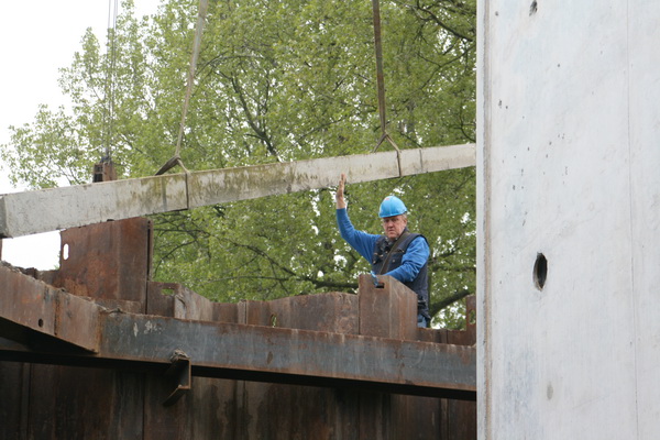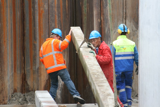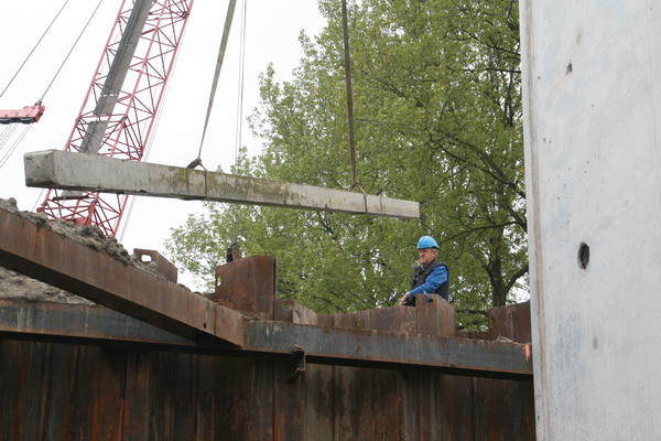Behoedzaam zakkend nadert de zware balk het fundament van de zuidelijke pijler voor het innemen van de gereserveerde plek….
