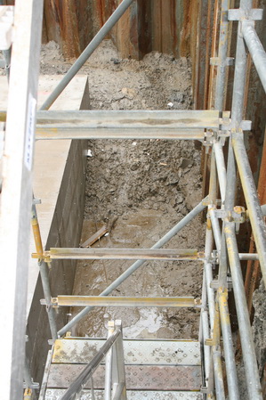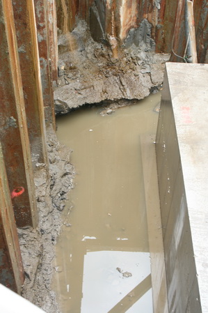 Twee situaties binnen de damwandkuip rond de zuidelijke pijler. Nu niet meer zo te kieken, het kanaalwater is binnen gelaten en (misschien) de damwanden zijn verwijderd. (Ik ben er nog niet weer wezen kijken…)
