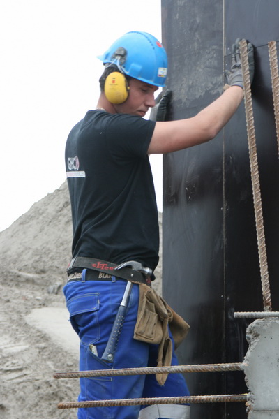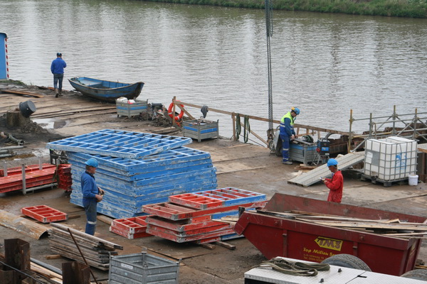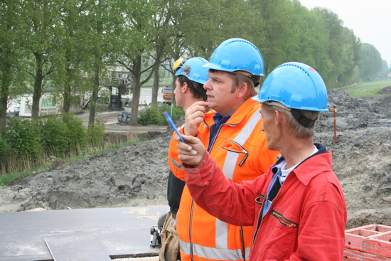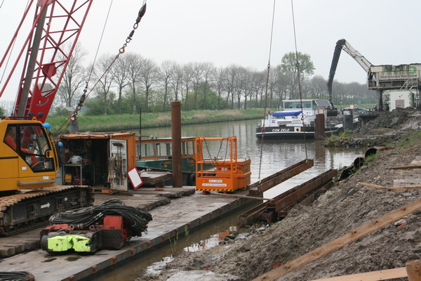 Het overzicht vanaf links… Uitvoerder Kees gaat nog eens naar beneden in de damwandkuip…. Een laatste keer?!