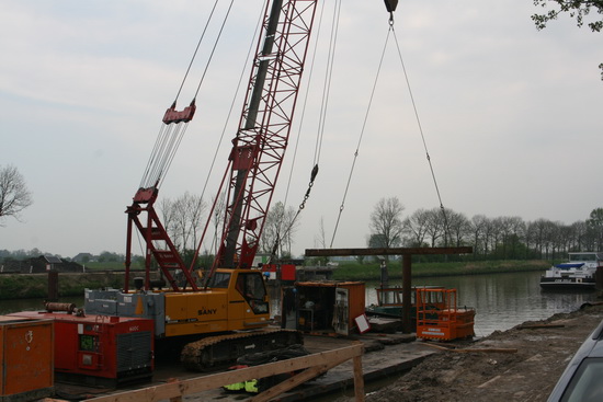 De kraanmachinist van KNOL legt een ijzeren balk gebruiksklaar….