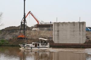 De situatie van noord naar zuid! Iets eerder stonden we nog aan de overkant…. Rechts de palen waarvan de koppen nog worden gesneld. En dan wordt er beton gestort…..