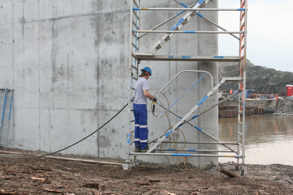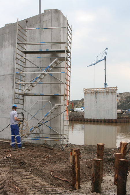 Aan de noordelijke pijler wordt “schoonheidswerk” verricht, geen smetten op het GMB-blazoen! Oneffenheden worden stelselmatig weggewerkt.