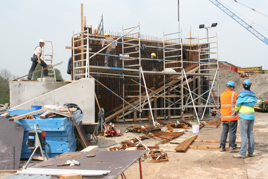 Vergis ik me, of wordt er toch enigszins zorgelijk gekeken naar de wapening en bekisting? Het beton moet nog worden gestort en het moet harden ook….