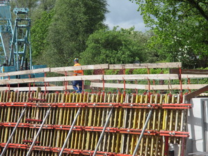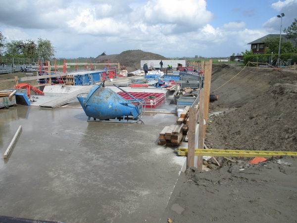 Situatie aan de oostkant (moot 4 tot en met 1), waar aan de linkerkant de verhoogde pompkelder zich bevindt. Het dek is afgelopen donderdag inderdaad ‘meegenomen’ door de betonstorters….