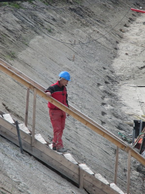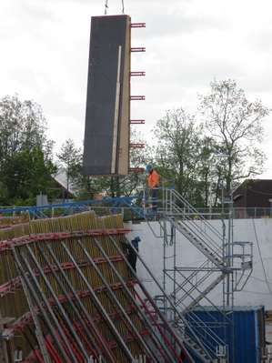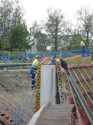 Langzaam maar zeker verdwijnt het bekistingsdeel achter de wand van moot 6….
