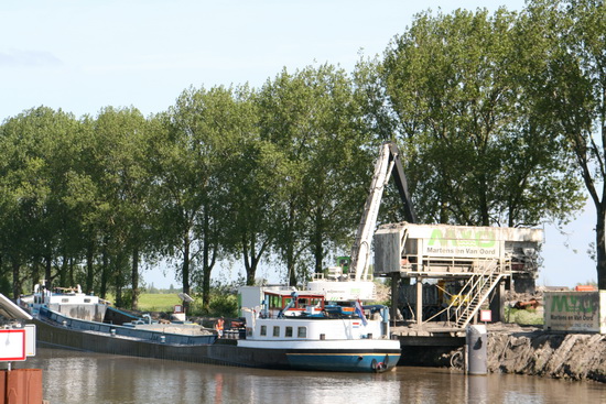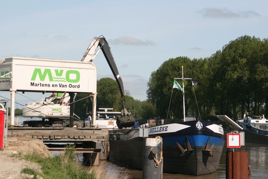 ….en hier de niet minder zonnige noordkant, waar de “Nelleke” voor de aanvoer van de gebaggerde grond zorgt.