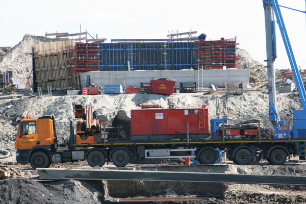 Martens en Van Oord blijft nog steeds doorgaan met het aanvoeren van bagger en het transporteren naar de grondlichamen, zowel aan de zuid- als aan de noordkant. In beeld de zonnige zuidkant….