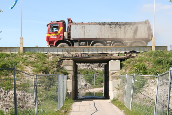 Een Zwama-vrachtwagen passeert het fietsersviaduct……