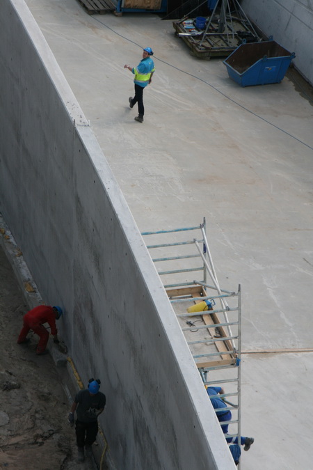 Ingezoomd op de tunnel, waar op verschillende plekken wordt afgewerkt. Assistent-uitvoerder John probeert buiten beeld te blijven… Nee, niet gelukt!