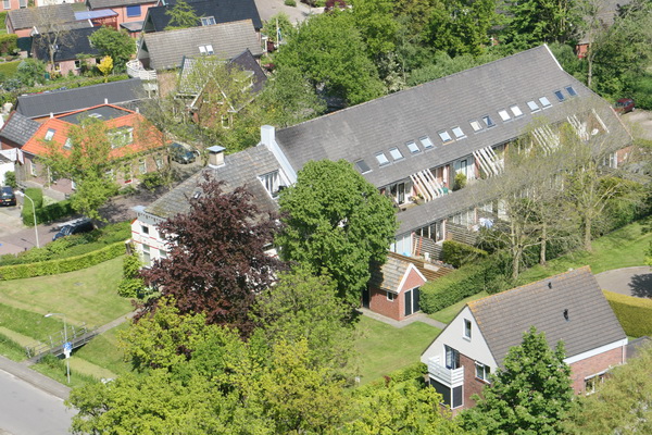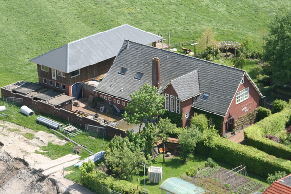 De woonboerderij Sicke Benninghestede van bovenaf gezien, op de hoek van Langestraat/Oosterweg. Vroeger de Witte Hoeve van o.a. de fam. Holtman.