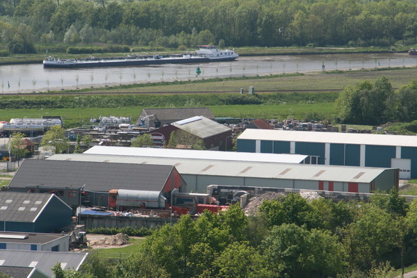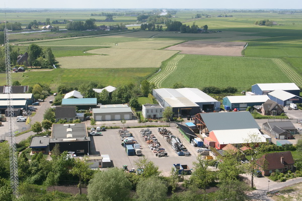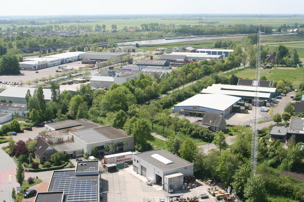 Op de voorgrond Aannemersbedrijf Hoekstra, daarachter Rijwielhandel Kuis. Rechts de GSM-antenne en daarachter Fixet. Meer op de achtergrond links Koopman Transport en op het randje, het kanaal.