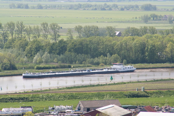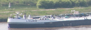 Deze foto kan iets beter worden bewerkt op de computer. Ver ingezoomd: De “Liguria” op weg naar de Stad, of naar Delfzijl….
