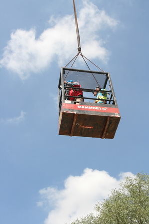 De manbak wordt gestaag omhoog getakeld door machinist Louis… Een déjà-vu-gevoel bekruipt me… In eerste instantie wist ik ook niet waar ik het eerst of het laatst naar moest kijken! Zoveel te zien!