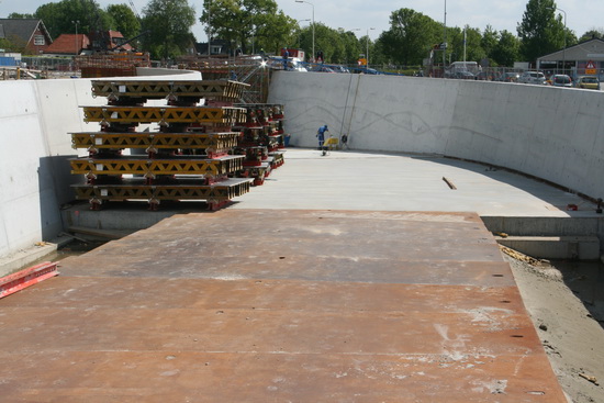 Ik krijg volop de gelegenheid de tunnel van binnen te bekijken en te bekieken… Hier de ingang vanaf de rotonde. Ja, de vloer van moot 10 moet er nog in….