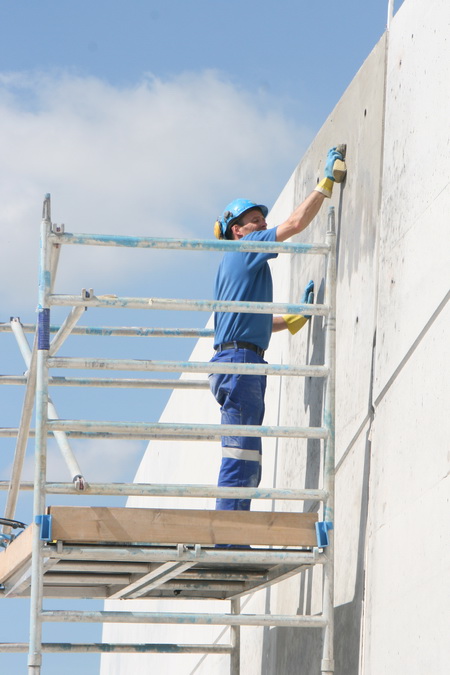 Terug van moot 1 naar moot 10…. Onderweg deze GMB’er die de binnenwand afwerkt/schoonmaakt…
