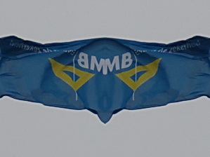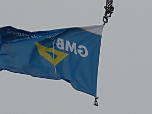 De fier wapperende GMB-vlag, ondanks de neerdalende triestigheid van vanmiddag… En je kunt er ook een vogel (een geluksvogel?) van maken: