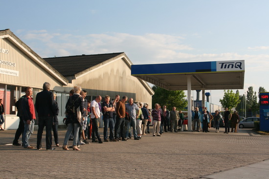 (Voordelig tanken op zaterdag. Kwamen daarom zoveel mensen met eigen auto?)