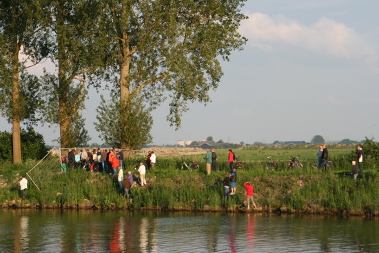 Aan de zuidkant van het kanaal hebben ze het in het zonnetje nog niet zo slecht getroffen! Alhoewel, ze worden wel vroegtijdig door een hekwerk tegengehouden… Filmer Dirk Vos is er ook bij… Links onder gaat al een belangstellende bijna illegaal….