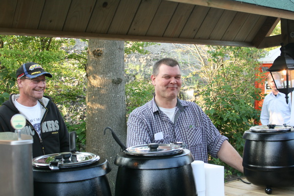 Twee kenners en kunners achter de bar! Rechts Wilt de Boer, Dorpsbelangen-cateraar (en leukste dorpenworstelaar van de hele provincie), samen met Herman Kalf, die van leidingen alles weet: Gas, water, elektriciteit, bier….
