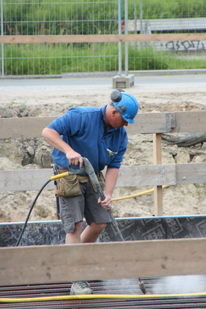 Tunnelvoorman Arjan en timmerman Ricardo completeren het drietal dat bezig is met pre-betonstort-bezigheden….