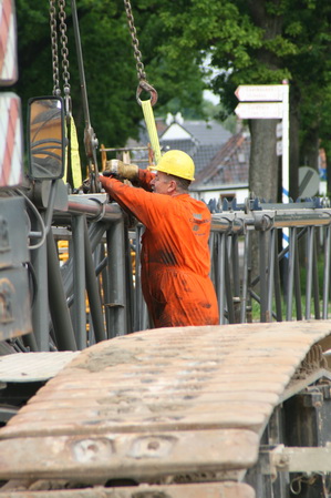 Links de andere deskundige, een boom van een kerel, die heel wat in zijn mars heeft, maar niet alleen lichamelijk! Een specialist op het gebied van kranen uit elkaar halen en in elkaar zetten!