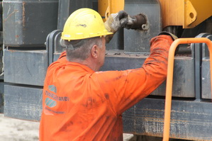 Kraanmachinist Bertus kijkt nog even naar de lege plek die hij achterlaat… Bijna een half jaar lang heeft hij hier de super kraan bediend, het werk versneld….