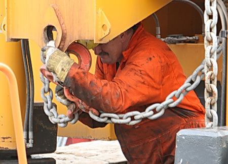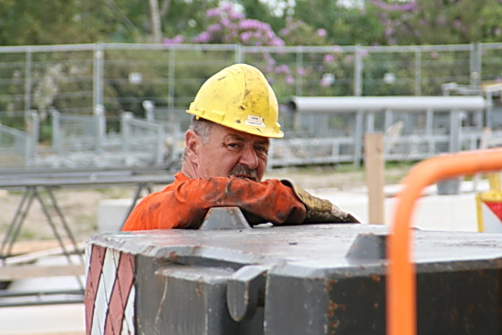 Mooi portret van de Mammoet-specialist. Ik kan me trouwens goed voorstellen dat deze kraankenners pottenkijkers zoals fotografen nu eenmaal zijn, zouden willen wegkijken….
