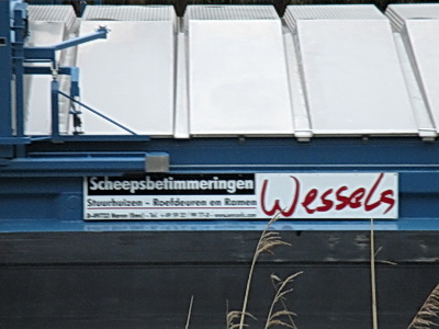 Even iets rechtzetten wat krom is, het is niet de firma Wessels uit Haren(Ems) die eigenaar is van dit schip. De firma Wessels is de scheepstimmerman welke bijna alle schepen van Kleine BV inricht en waarschijnlijk uit dank deze reclame mag plaatsen.