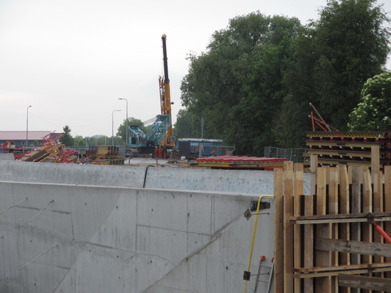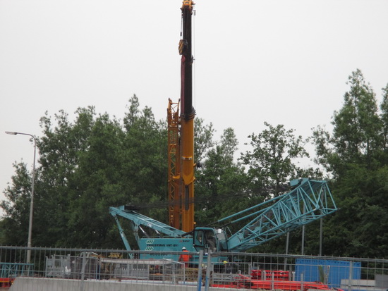 In de regen viel het me eerst niet eens op… De verkleining van de Zwagermankraan, de giek is al danig gekortwiekt…