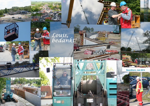 Nee, kraanmachinist Louis heb ik vandaag niet meer gezien, noch gesproken. Toch een collage als huldeblijk voor deze nuchtere noorderling uit Wildervank die zonder kleerscheuren het nodige takelwerk verrichtte!