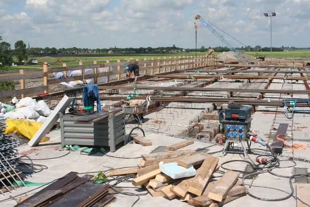 De stem hoort bij Piet, een westerling die mij op een heel plezierige manier iets probeert te doen begrijpen van “naspannen”. Het beton blijkt op de fabriek al te zijn voorgespannen. Nu wordt het nagespannen om ongewenste betonbeweging uit te sluiten.