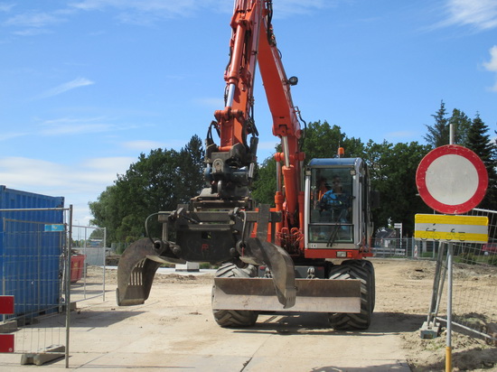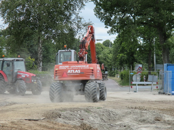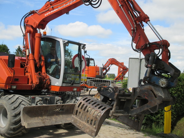 Niet alleen rupsvoertuigen die bergen werk verzetten, ook de grijpers! En die zijn er nogal wat! Aan de rotondekant is Entjes terug van weggeweest. Hier rijdt een grijper van Mulders Loonbedrijf, oranje gekleurd, net als het materieel van Mechielsen…..
