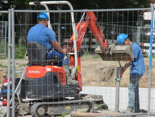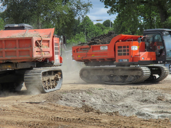 De rupsen blijven grond aanvoeren, gehaald aan de oostkant van de tunnel, waar het wegtracé verder wordt uitgegraven. Naast de tunnelmoten kan er nog meer bij, op het tunneldak ook!