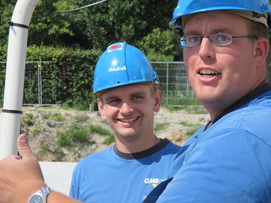 Hé, kijk, René is samen met zijn GMB-maat bezig met een opruimklus. Op de “speelgoedgrijper” met rupsbanden… Wat doen ze?