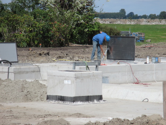 We zijn aan de oostkant van de tunnel, bij moot 3 met zijn pompkelder! Zijn dit toegangsluiken of zonnepanelen? Op de voorgrond een lichtbak, aan de plafondkant van de tunnel zit een lamp….