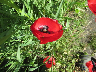 Verrassend in de berm van de parallelweg, klaprozen! Dit vind ik nou een mooie kleur!