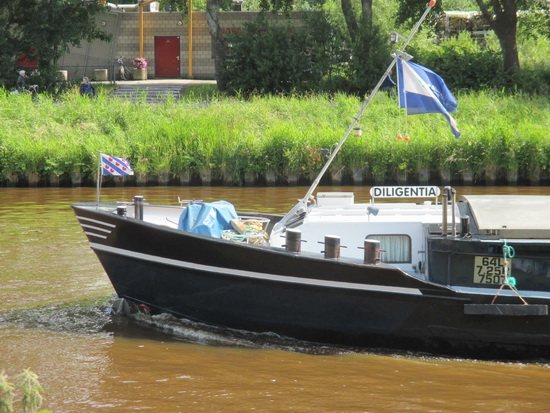 De passerende binnenvaarder? De “Diligentia”, 64 meter lang, tonnage 750…. (En toen was de batterij van de lutje Canon leeg…)
