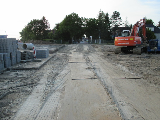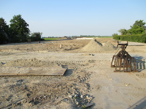 De situatie van west naar oost met over moot 4 de ‘noodweg’, hier nog een zandweg….