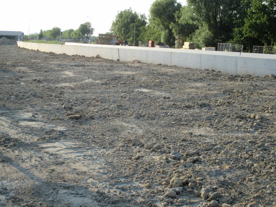 De verbinding tussen de tunnel en de rotonde, zeer binnenkort te asfalteren…. (Ook zichtbaar het fotografensilhouet…)