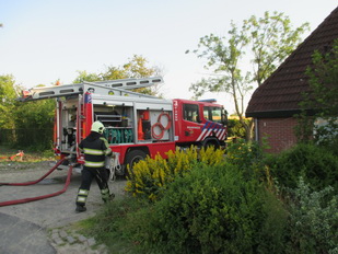 De woning aan de Mokkenburgweg, inmiddels leeg, de familie Hekkema is verhuisd. De woning is blijkbaar “ten dode opgeschreven”, want anders zou de brandweer er geen oefening houden…