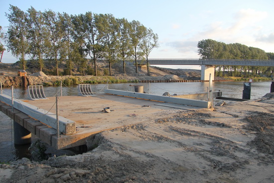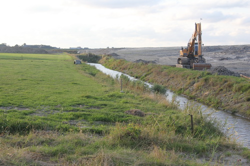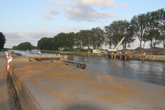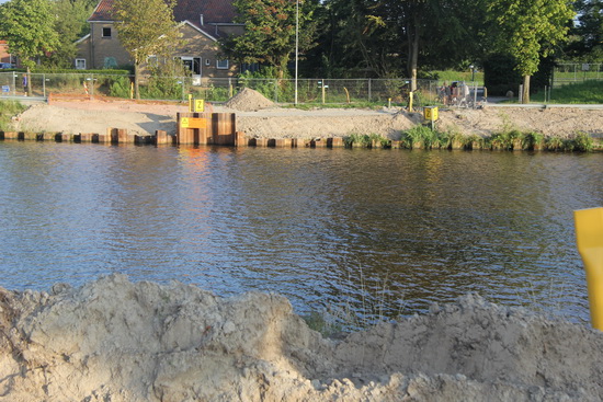 Veranderend landschap aan de oostkant van de NVH-brug. Af te voeren metalen rijplaten? Hier wordt geen bagger meer aangevoerd, wel aan de overkant….