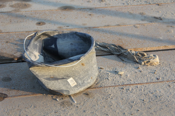 De overslagplaats is voor een deel al gedemonteerd. Martens en Van Oord zijn nog wel aan de overkant actief, al is ook daar de grote bak verdwenen…..